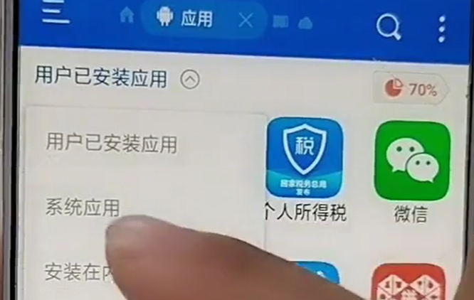 打开之后点击最右边的应用,这个时候我们看一下,点击一下,然后第一个是用户已安装应用,然后我们点击系统应用,这个系统应用应该怎样卸载?