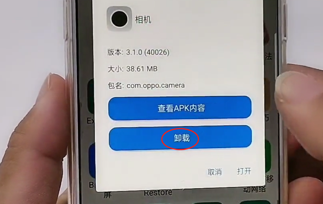 比如说我手机自带的这个相机,点开之后,它是没有卸载的,打开应用信息也不可以卸载,但是我们现在打开这个应用来看一下,点一下,然后会出现一个卸载,在这个页面是可以卸载的,像这些系统的软件,我们也都可以通过这个软件去进行卸载。我们卸载的时候一定要注意了,比如说我们手机里边自带的系统软件有很多,比如说我们经常用到的这个相机、相册、日历、闹钟、天气。